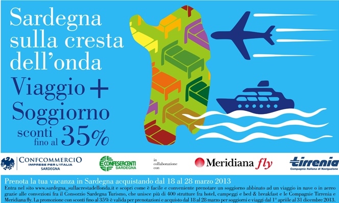 Cagliari, 18 MAR – Il Consorzio Sardegna Turismo Servizi (STS), fondato un anno fa in Sardegna dalle Associazioni regionali di Confcommercio, Confesercenti, Confapi e Confindustria, ripropone sardegnasullacrestadellonda.it in vista della prossima stagione estiva 2014, confermando la collaborazione con Meridiana e Tirrenia e accogliendo un nuovo partner, Moby. Il Consorzio STS adotta una formula originale, diversa […]