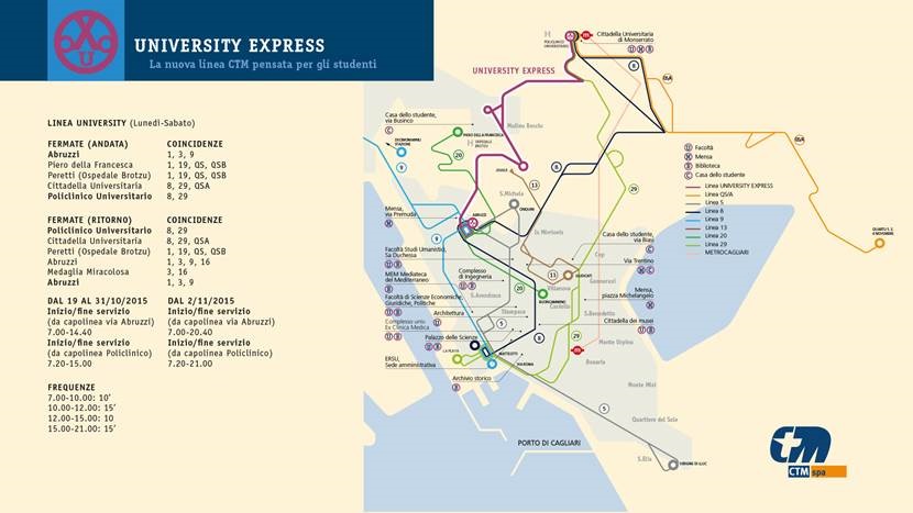 Cagliari, 16 OTT – Nasce la nuova linea pensata per gli studenti. Da lunedì 19 ottobre prende il via University Express, una linea veloce che collega via Abruzzi al Policlinico di Monserrato in sole 5 fermate. Andare all’università non è mai stato così facile! University Express consente l’interscambio con le linee 1, 3, 8, 8A, 9, […]