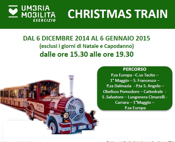 Il “Christmas Train” di Umbria Mobilità Esercizio a Perugia e Terni per gli eventi di Natale