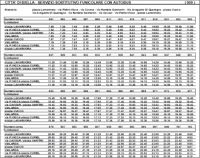 Biella, 27 MAR – Si avvisa la Clientela che sull’impianto funicolare Biella Piano – Biella Piazzo, da mercoledì 8 aprile a venerdì 8 maggio si effettuerà servizio sostitutivo con autobus come da orario allegato.